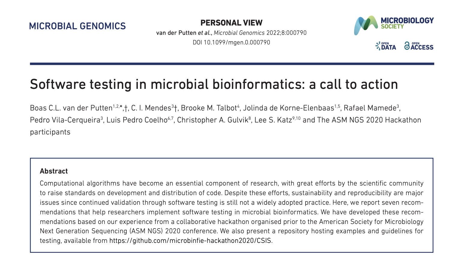 In the field of microbial bioinformatics, good software engineering practices are not yet widely adopted. (...) This paper serves as a resource that could help microbial bioinformaticians get started with software testing if they have not had formal training.