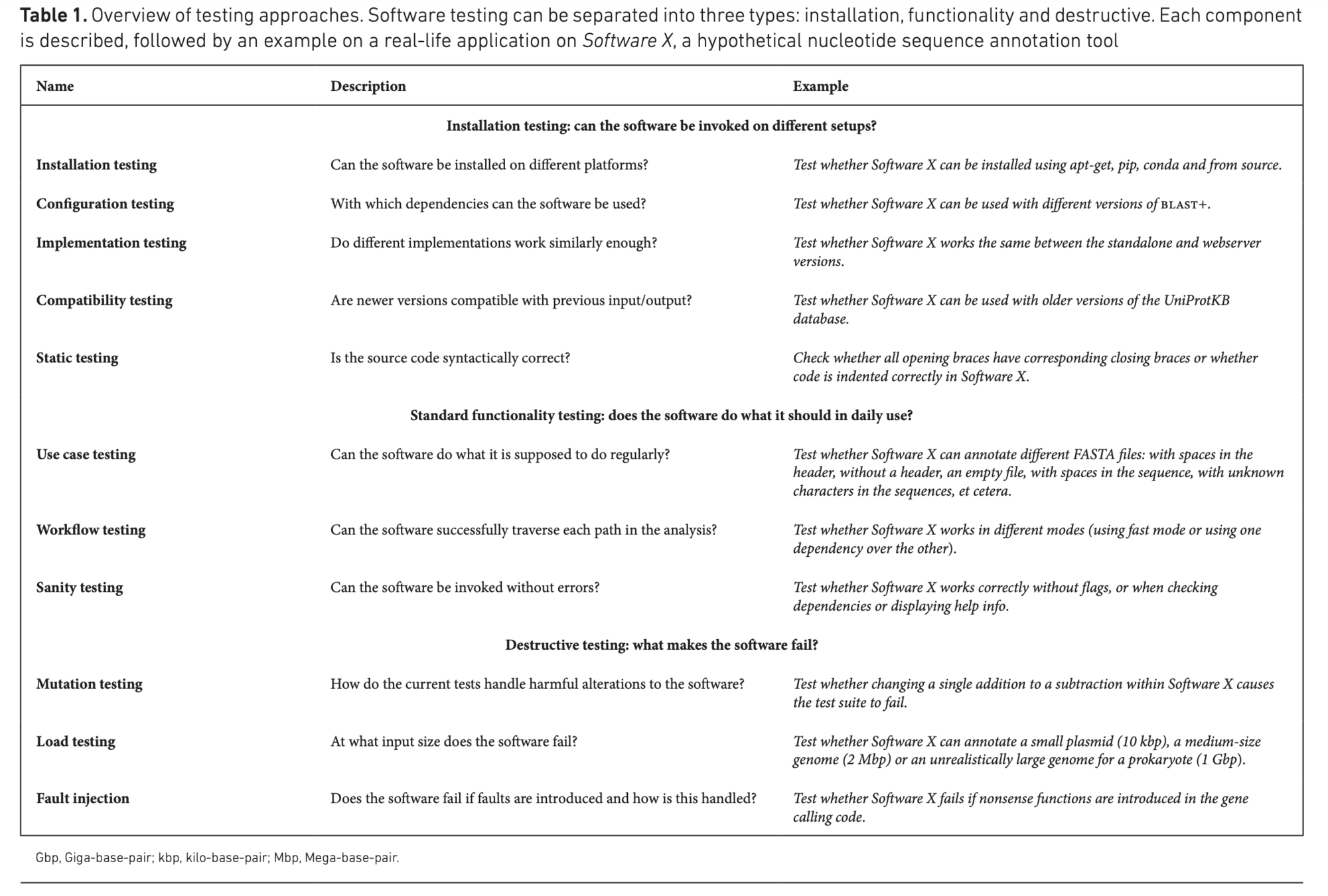 Software testing in bioinformatics