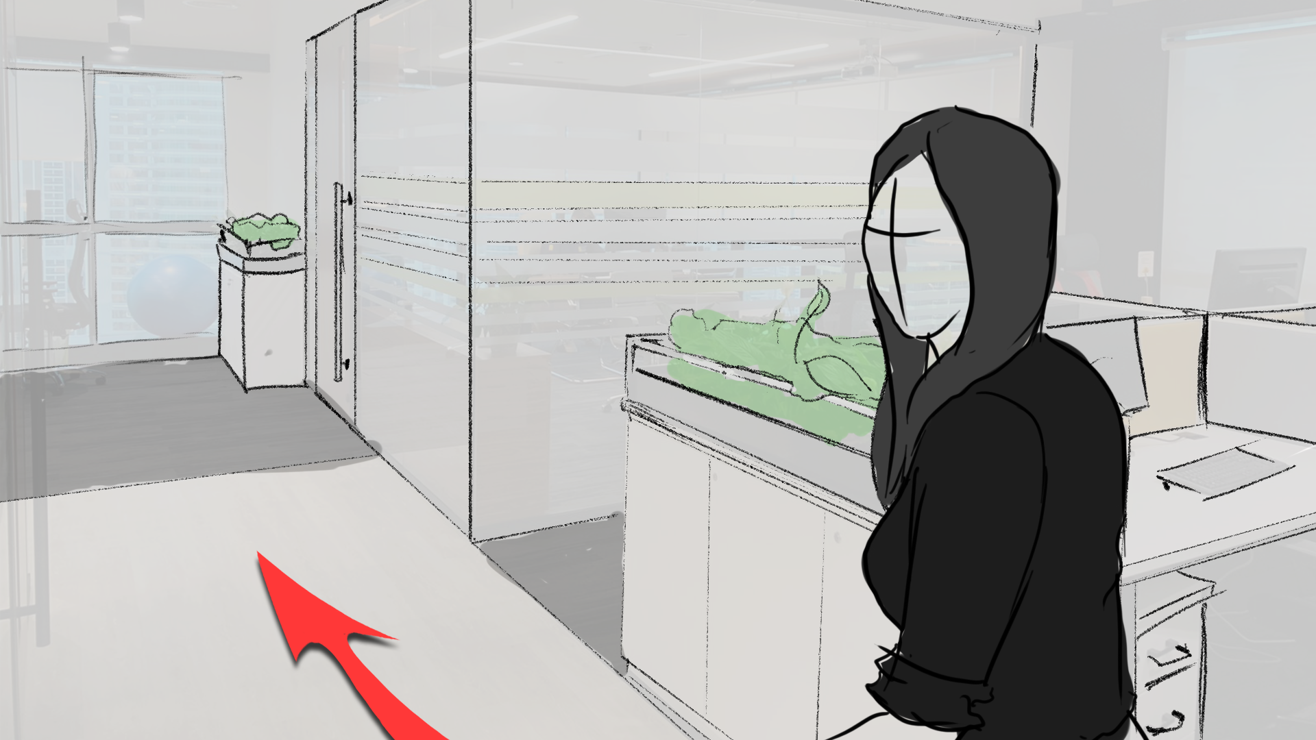 The Solar location shot will be masked out from a tab in her hand and she will walk through the alley.