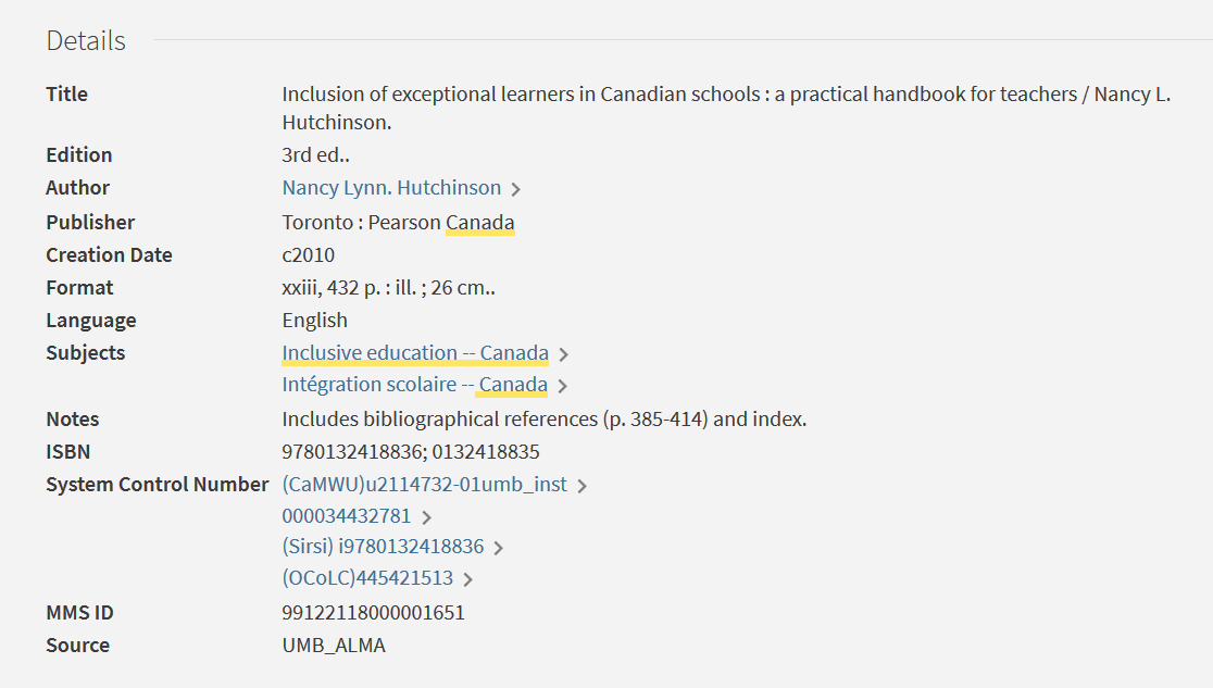 finding Library of Congress subject headings for inclusive education in the catalogue