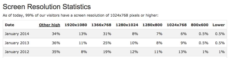 De meeste mensen hebben een computerscherm dat tussen de 1024px en 1920px breed beeld laat zien.