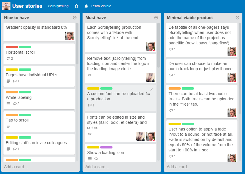 1: Maak in Google Drive of Trello een overzicht van de user stories die je met jouw opdrachtgever geschreven hebt.