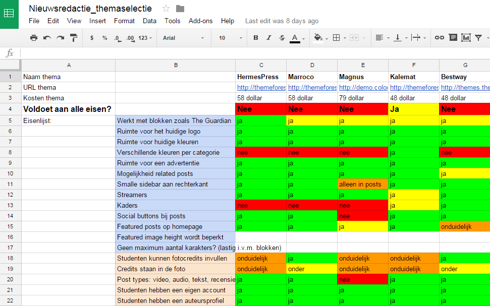 2: Zoek (gratis) thema's die aan zoveel mogelijk eisen voldoen.