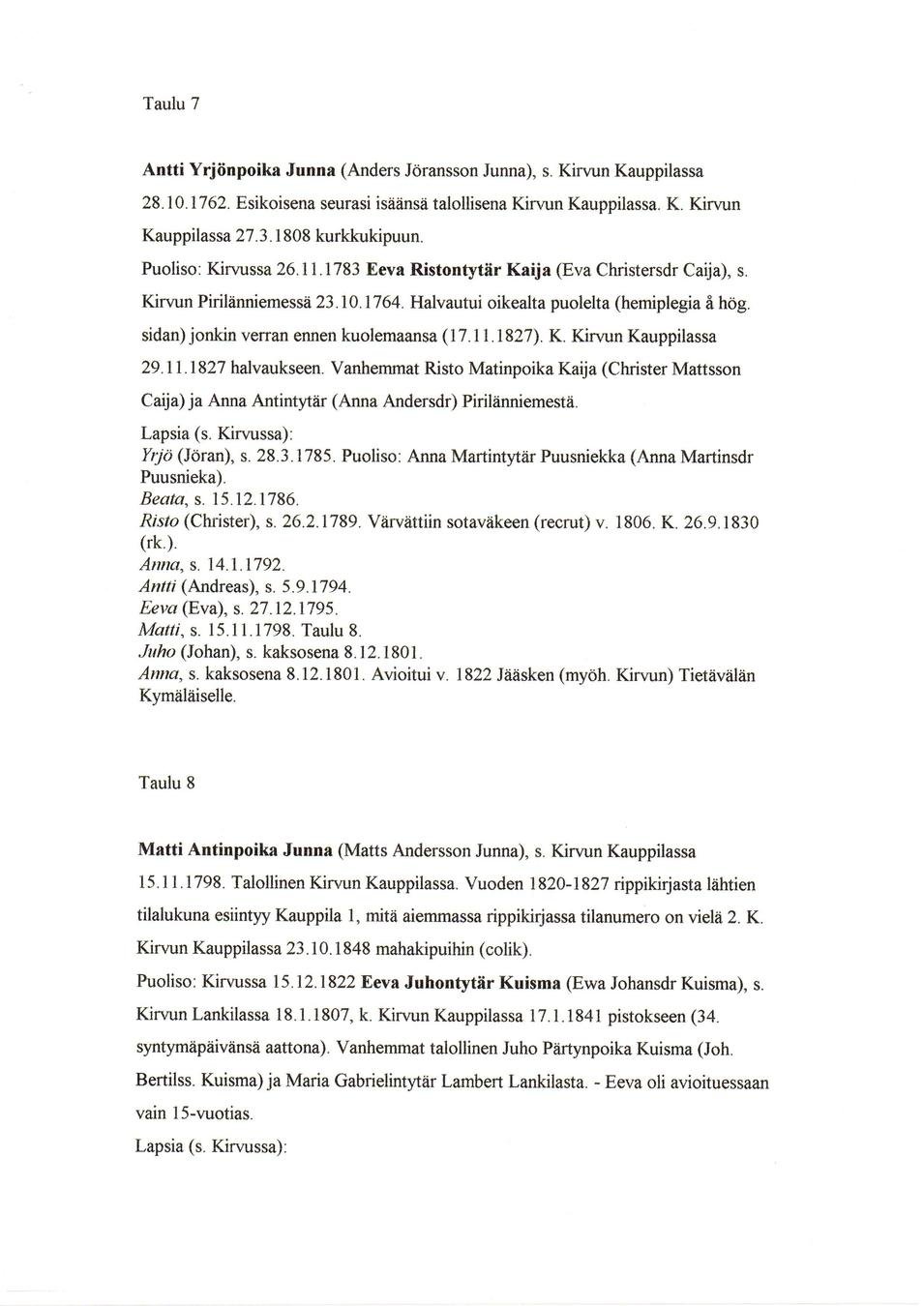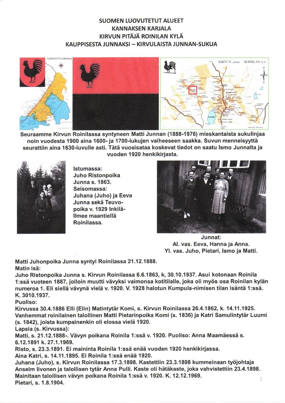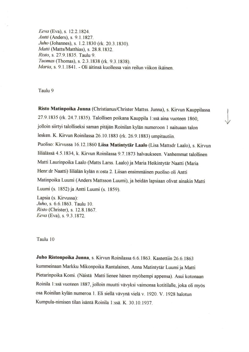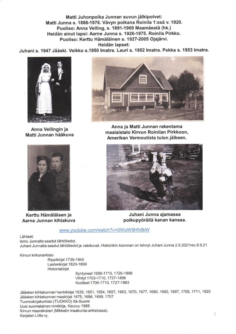 MATTI JUNNAN TALOT KIRVUN ROINILA PIRKOSSA JA JÄÄSKEN JAKOLASSA