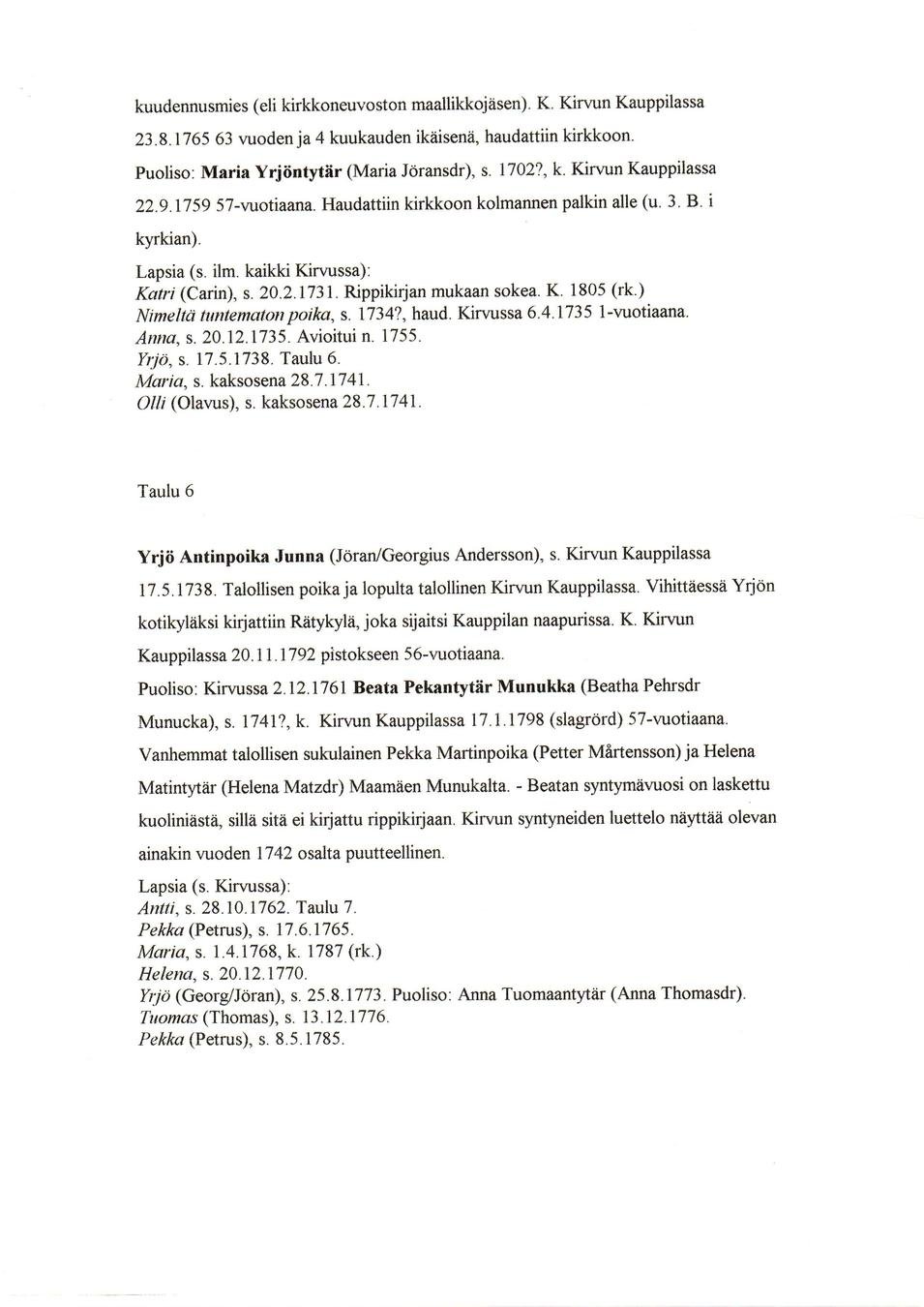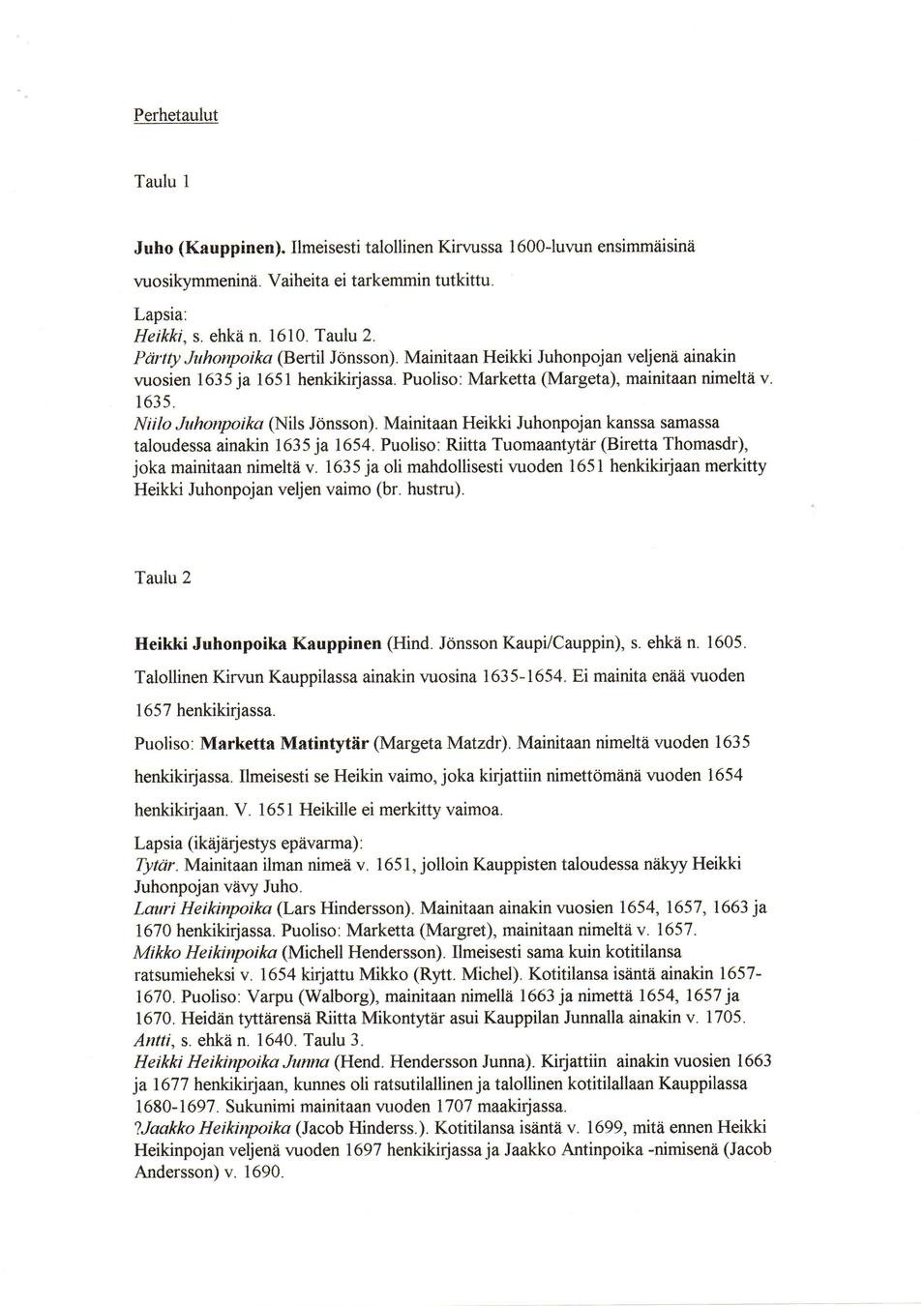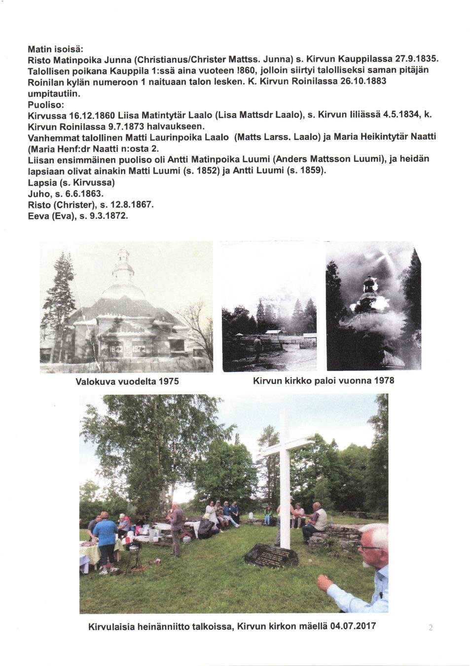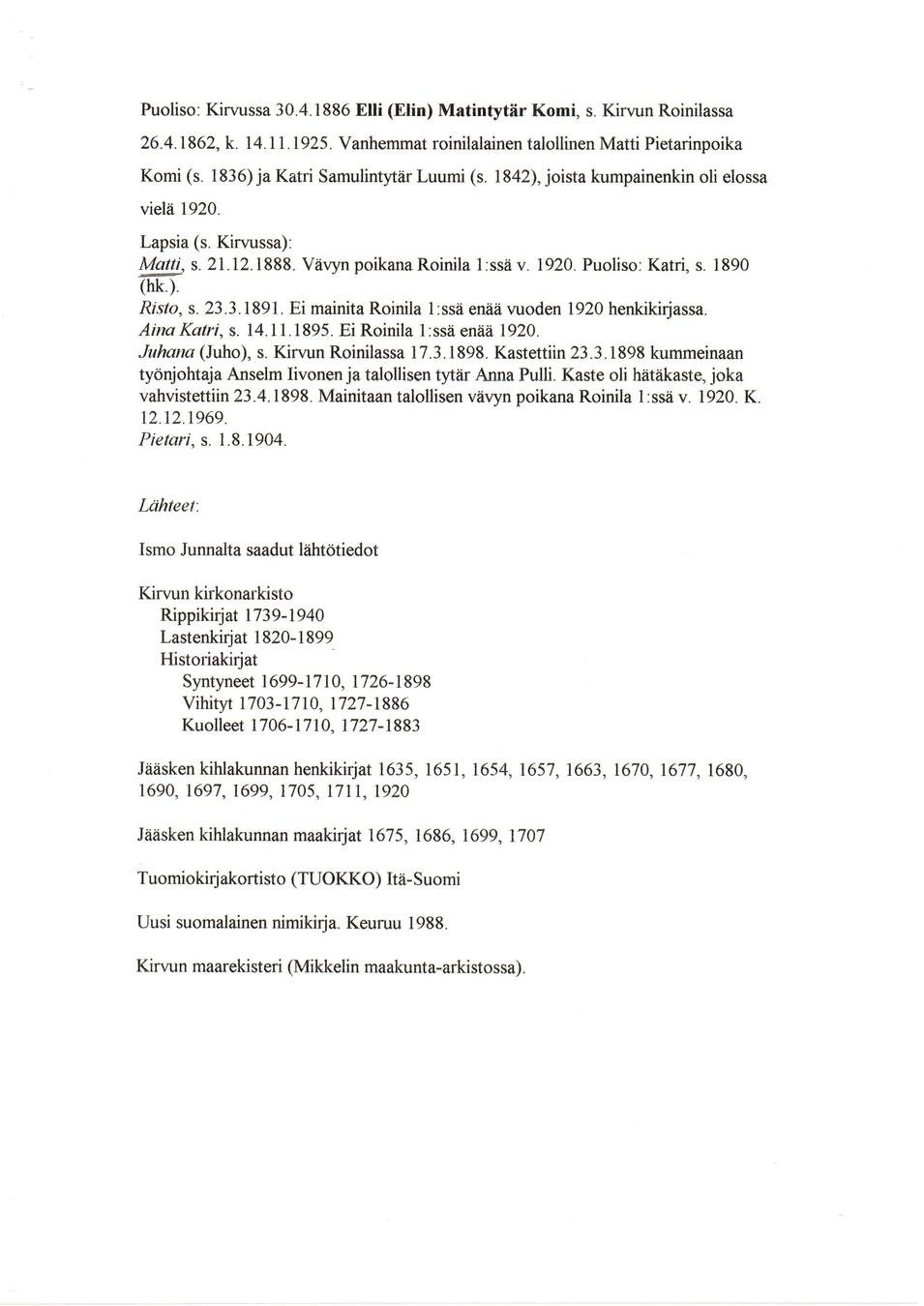 MATTI JUNNAN TALOT KIRVUN ROINILA PIRKOSSA JA JÄÄSKEN JAKOLASSA