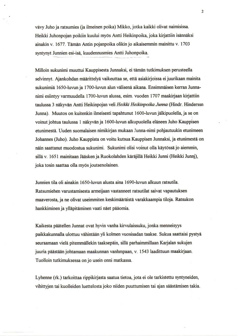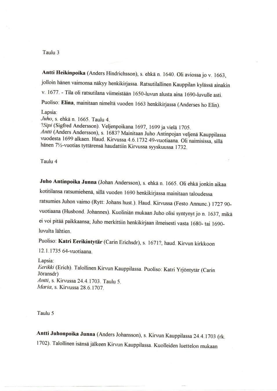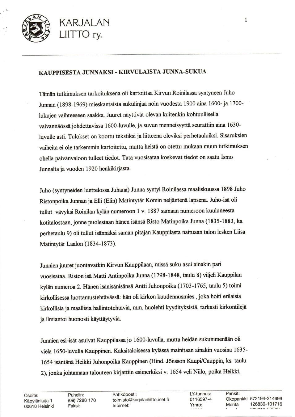 JUHANI JUNNA SUKUSELVITYS MATTI JUNNAN SUKUHAARASTA