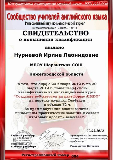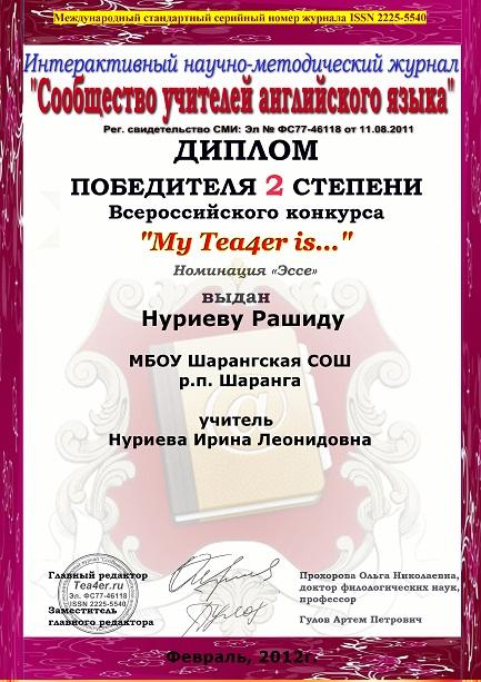 "Учитель английского языка, Ирина Леонидовна Нуриева, которая заражает любовью к иностранному языку всех