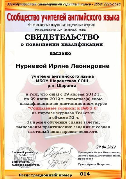 Учитель английского языка, первая категория