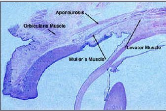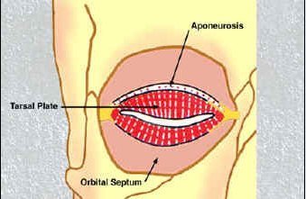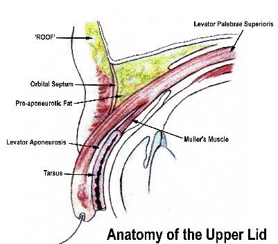 - Levator palpebrae becomes aponeurotic already at the level of the superior transverse ligament 14 to 20 mm above the tarsus. Preseptal injections closer