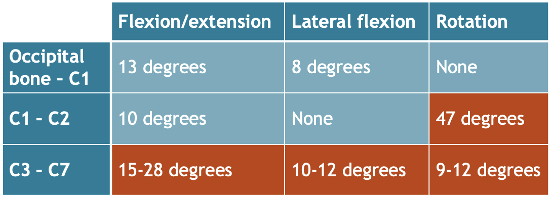 - Lateral flexion of head is at Occ-C1- maximum movement at this joint is 10 degrees