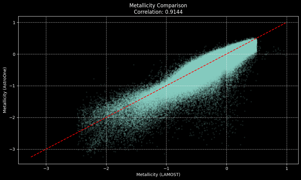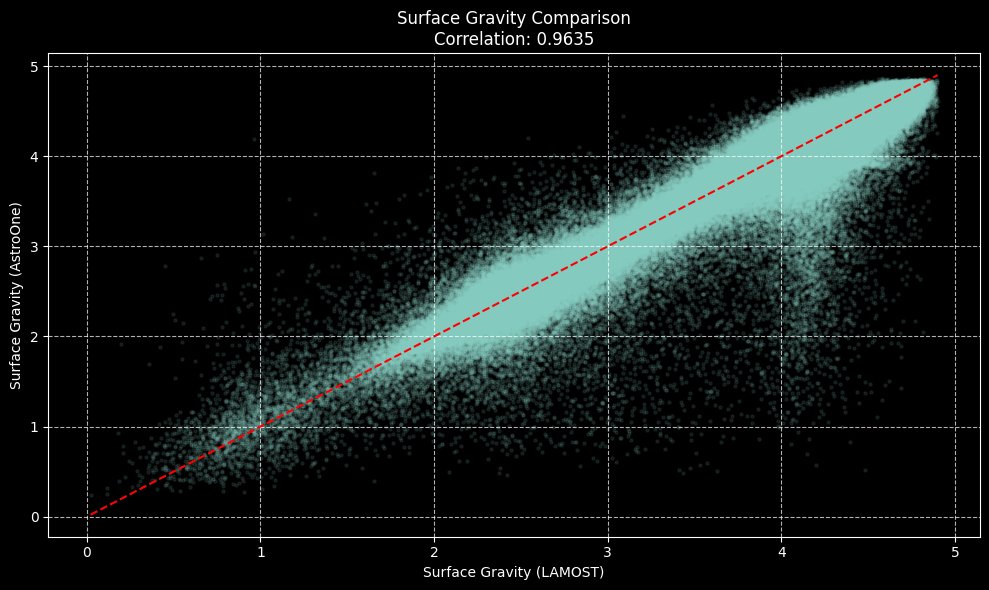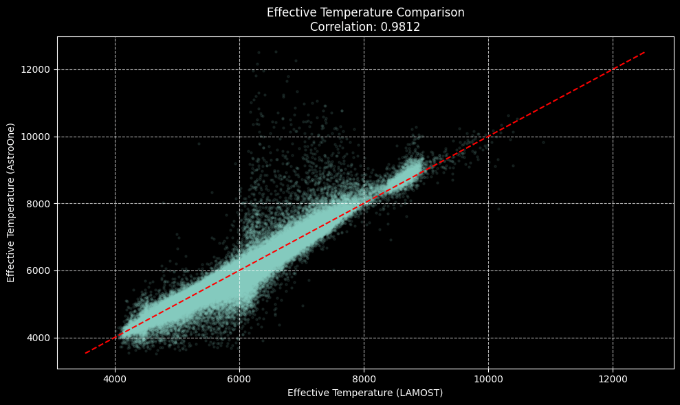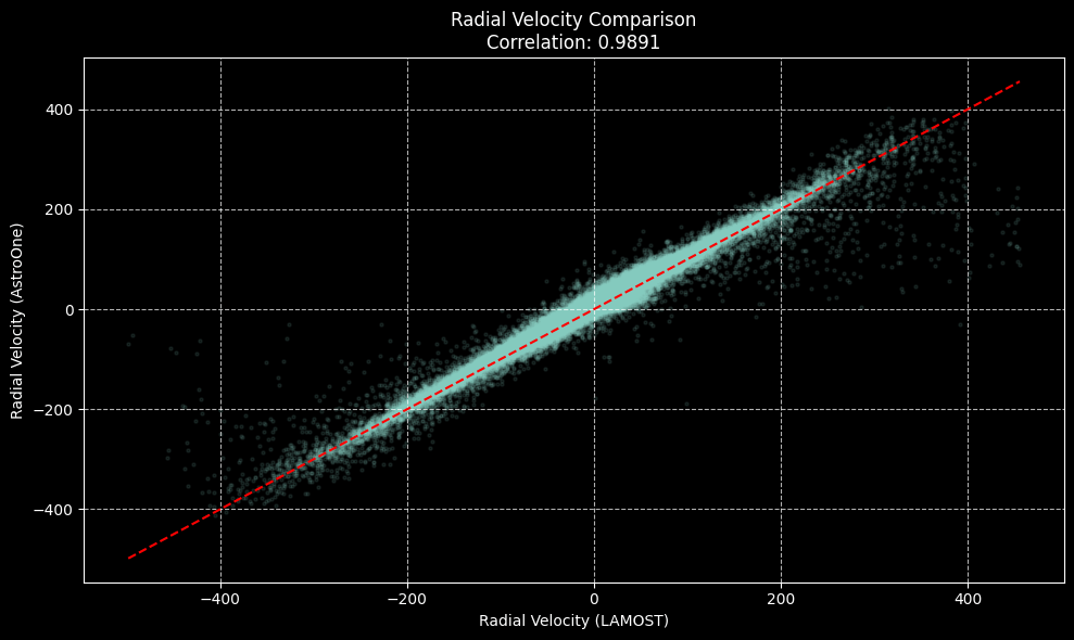 在本分析中,我们对LAMOST和AstroOne两个天文数据集进行了清理和初步分析。以下是主要步骤和发现: