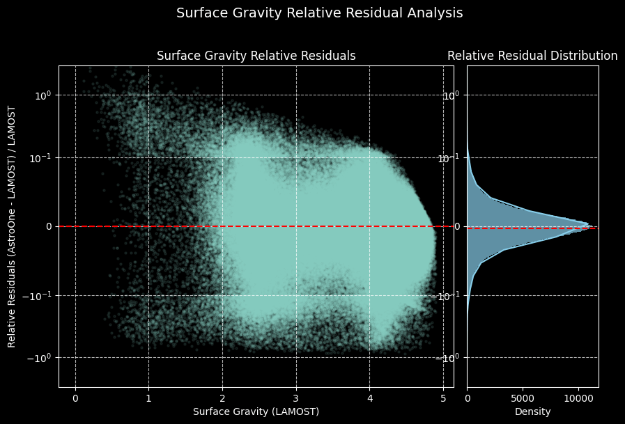 从上图的表面重力(Surface Gravity)残差分析可以观察到以下几个关键特点: