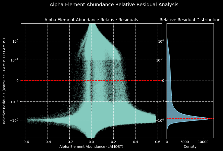 这种分析将帮助我们理解数据质量,识别潜在的系统性偏差,并为后续的多变量分析和模型构建提供依据。特别是,我们将关注ALPHA_FE参数,由于其在LAMOST数据中存在大量缺失,了解其在有效测量中的误差特性尤为重要。
