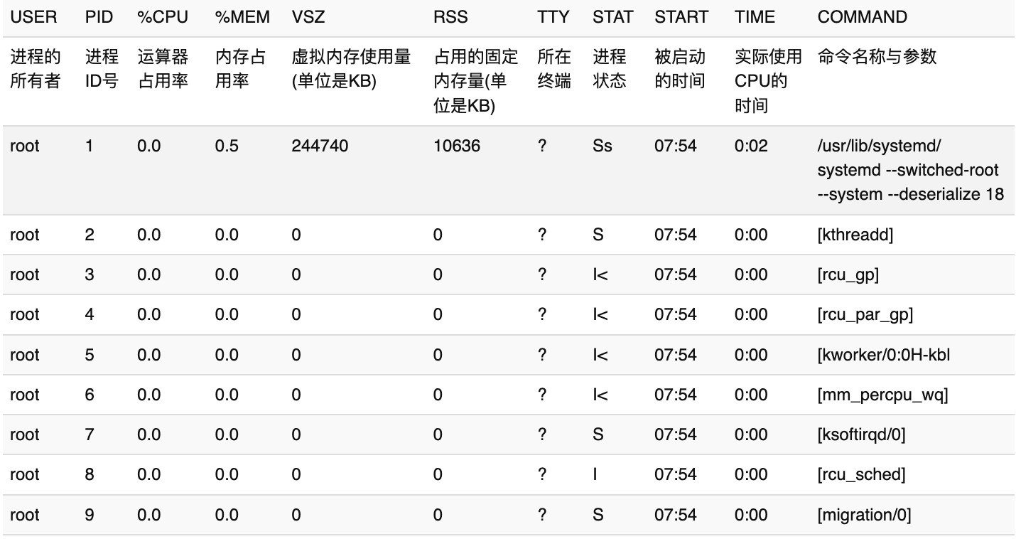 $killall [参数] 服务名称 # 终止某个指定名称的服务所对应的全部进程第1行:系统时间、运行时间、登录终端数、系统负载(3个数值分别为1分钟、5分钟、15分钟内的平均值,数值越小意味着负载越低)。