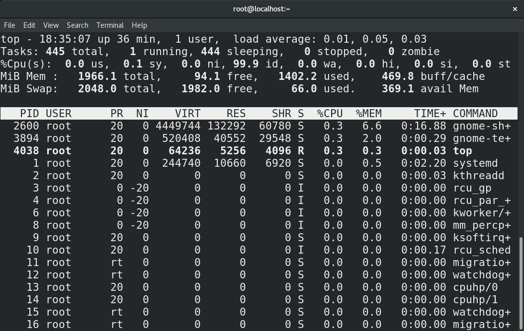 第3行:用户占用资源百分比、系统内核占用资源百分比、改变过优先级的进程资源百分比、空闲的资源百分比等。其中数据均为CPU数据并以百分比格式显示,例如“99.9 id”意味着有99.9%的CPU处理器资源处于空闲。