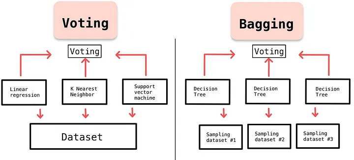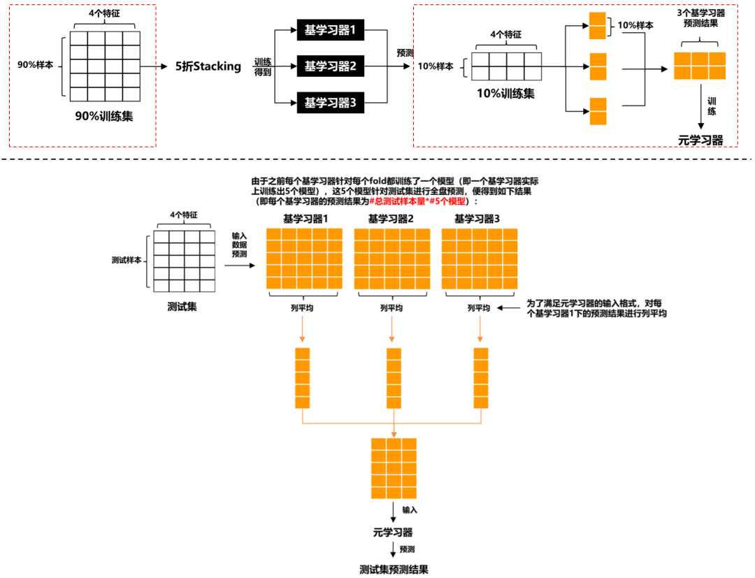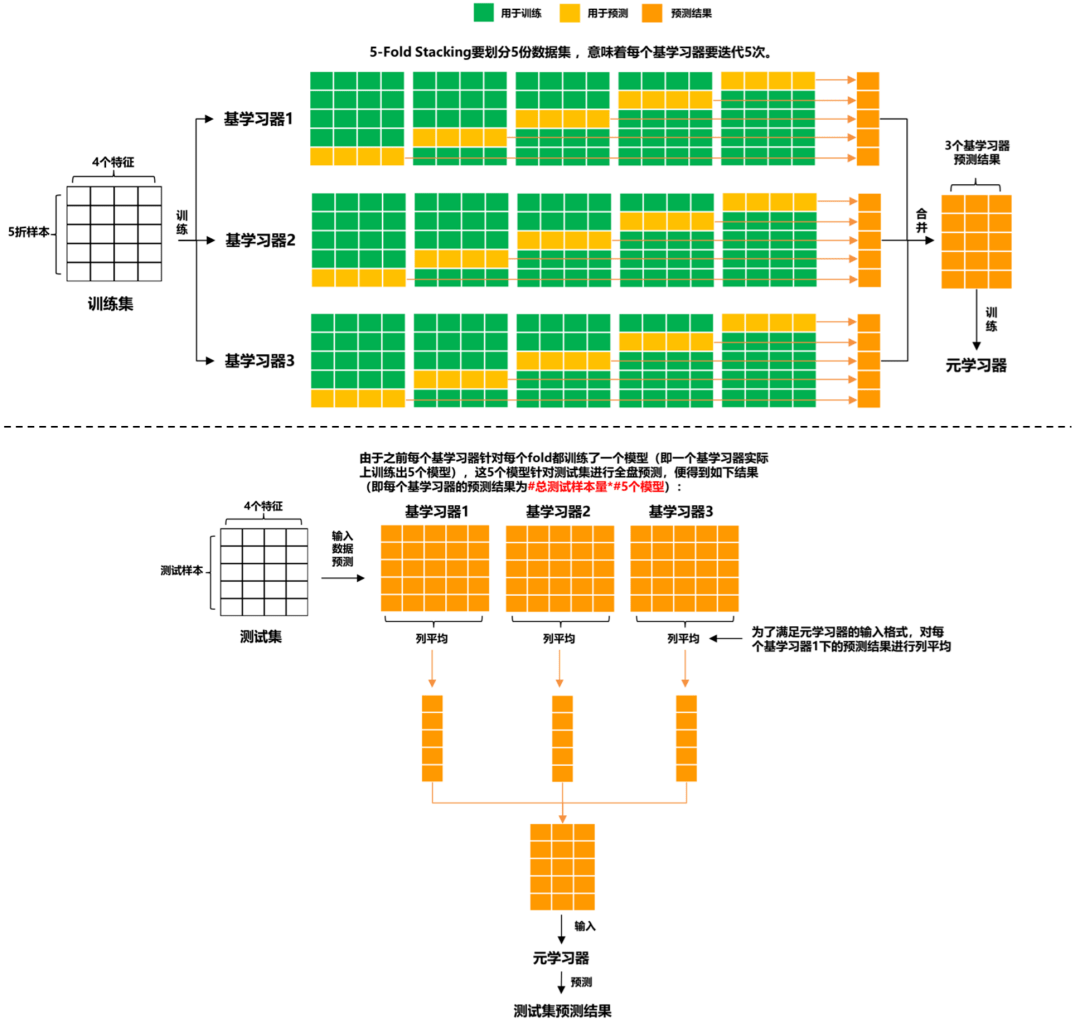 异质模型(Component Learner):这些模型是不同类型的,例如一部分是决策树,一部分是神经网络。异质模型通常通过结合不同类型模型的优点来增加多样性,例如在堆叠泛化(Stacking)中,我们可以使用不同类型的模型作为基模型,然后使用另一个模型(元模型)来结合这些基模型的预测结果。