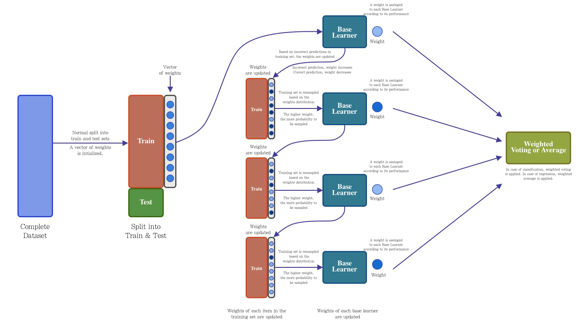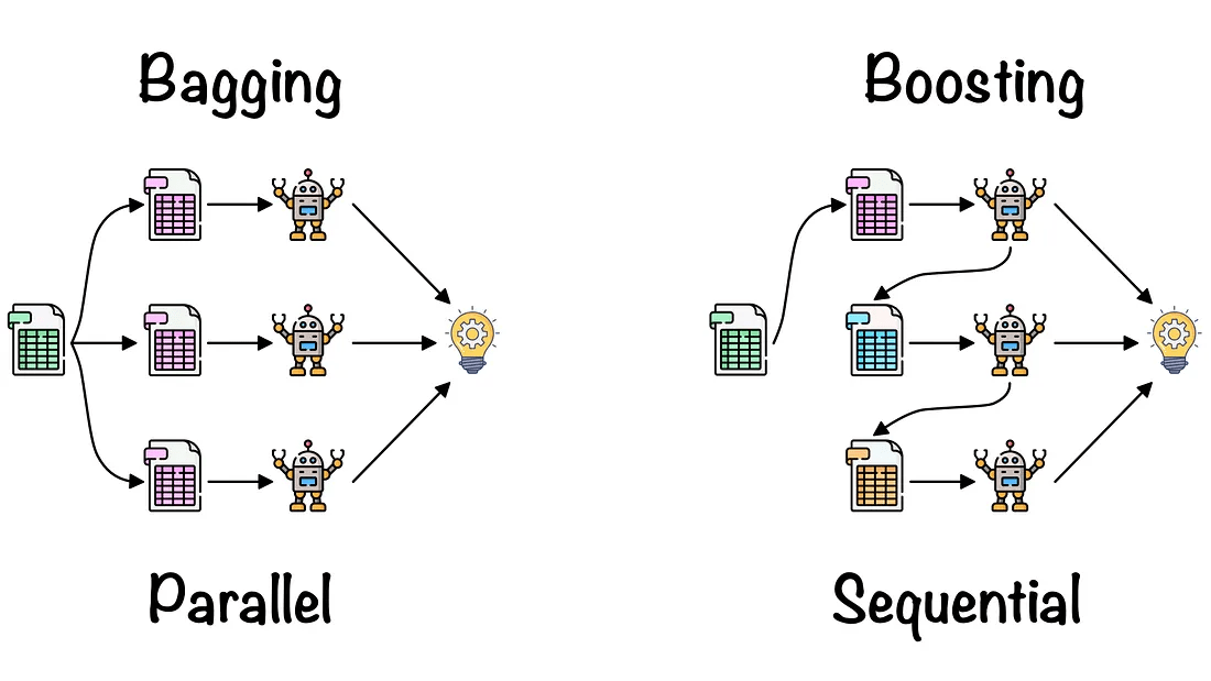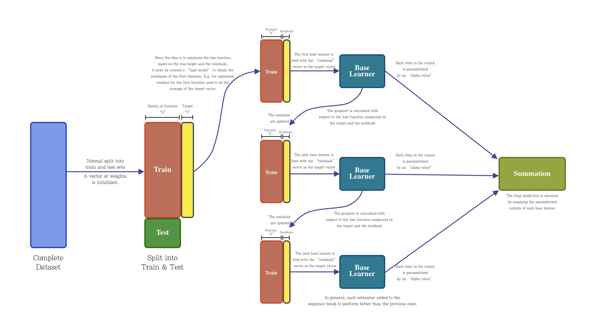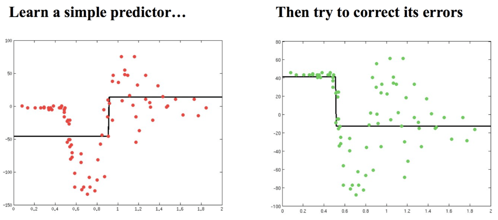 基础思想:Boosting是一种串行的工作机制,即个体学习器的训练存在依赖关系,必须一步一步序列化进行。Boosting是一个序列化的过程,后续模型会矫正之前模型的预测结果。也就是说,之后的模型依赖于之前的模型。