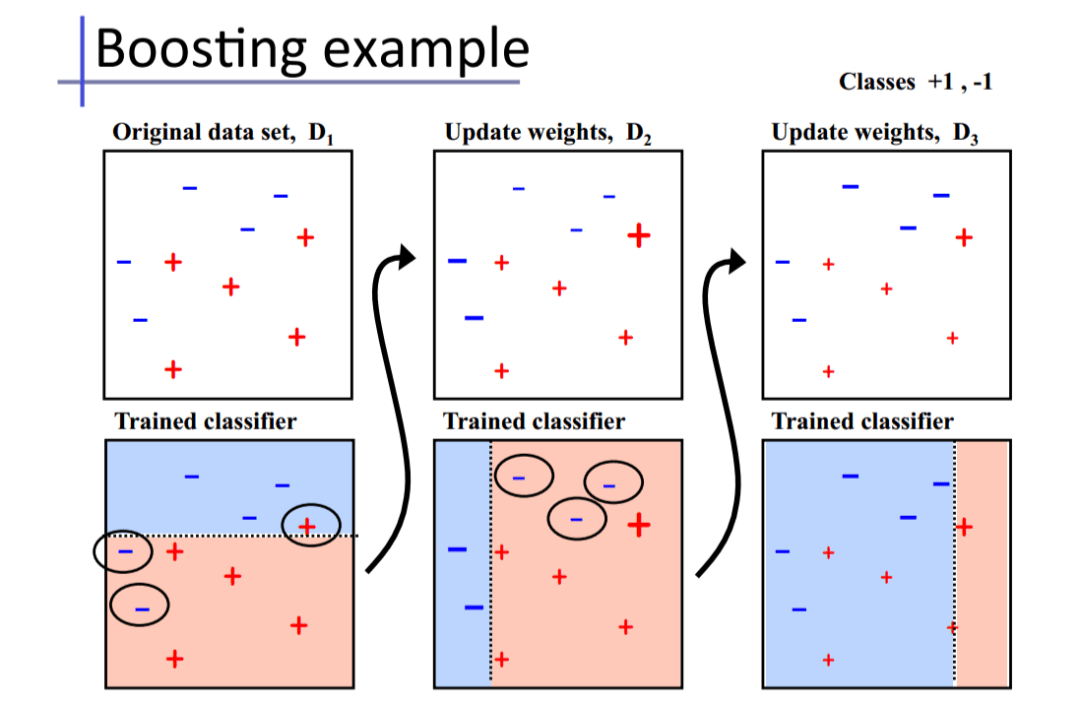 其基本思想是:增加前一个基学习器在训练训练过程中预测错误样本的权重,使得后续基学习器更加关注这些打标错误的训练样本,尽可能纠正这些错误,一直向下串行直至产生需要的T个基学习器,Boosting最终对这T个学习器进行加权结合,产生学习器委员会。