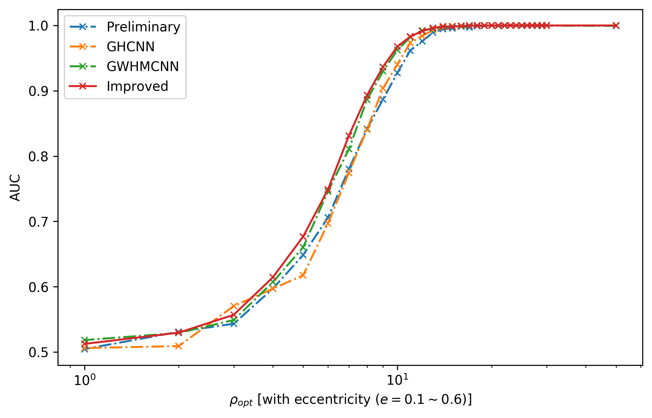 3. 网络对处在旋进后期和并合阶段的引力波波形的特征识别最敏感;输入时域数据的信号探测敏感度不均匀。