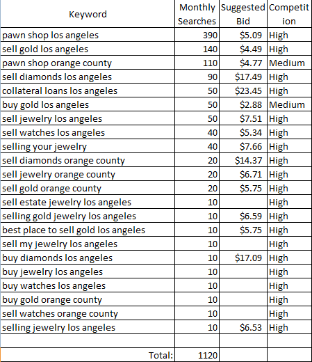 Future Client Target Keywords: