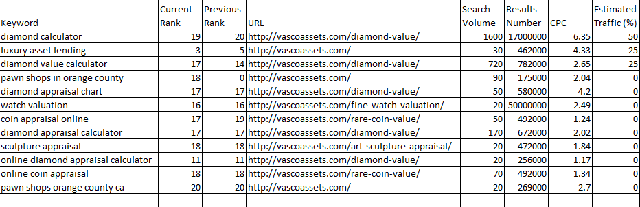 Current Website Ranking for Different Keywords