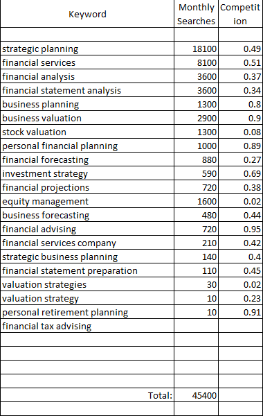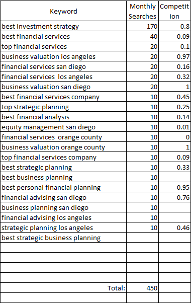 Future Client Target Keywords: