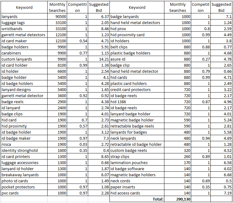 Initial Keyword Analysis: