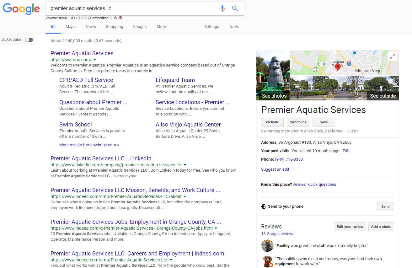 - Off-Page SEO: $2,500.00/Mo. For SwimOC