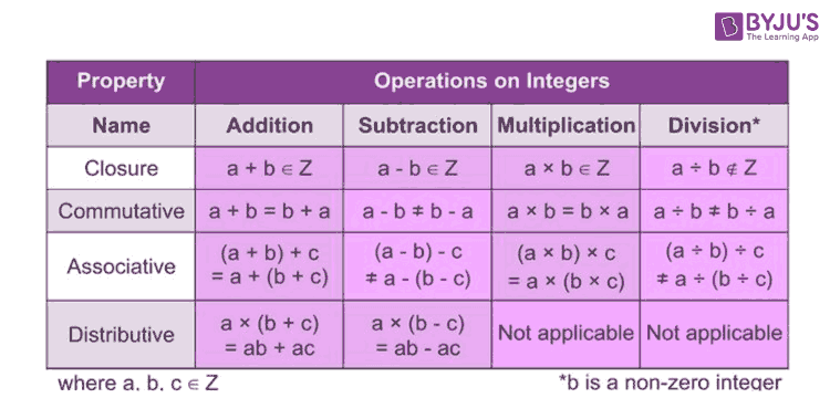 Properties for Integers