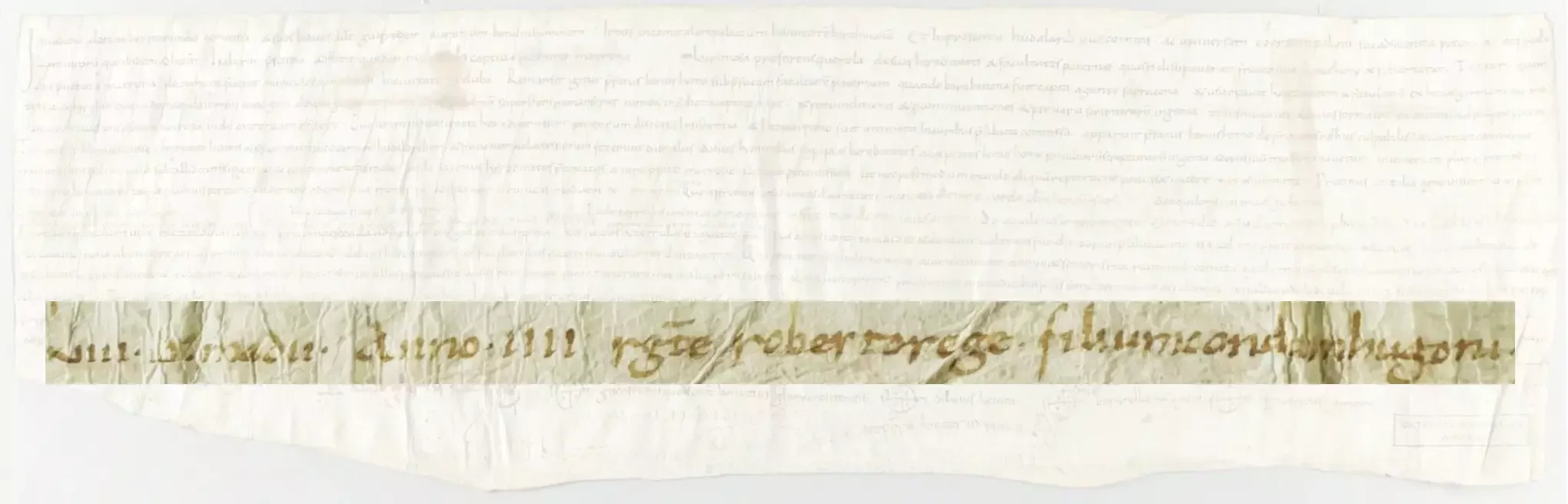 Vuit dies abans de les idus de maig, l’any quart del regnat del rei Robert, fill del difunt Hug
