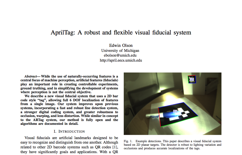 Olson, E., AprilTag: A robust and flexible visual fiducial system, ICRA, 2011