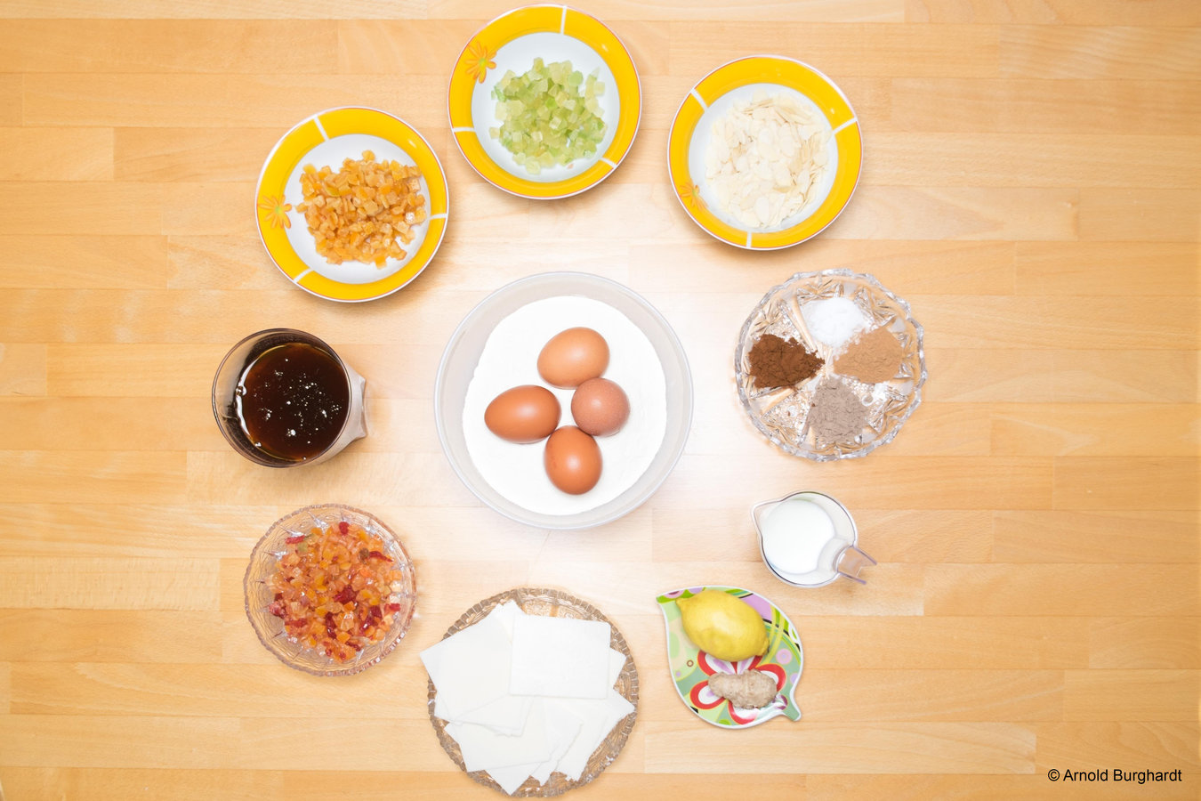Im weiteren Schritt werden die Gewürze und die geriebene Zitronenschale beigemengt.