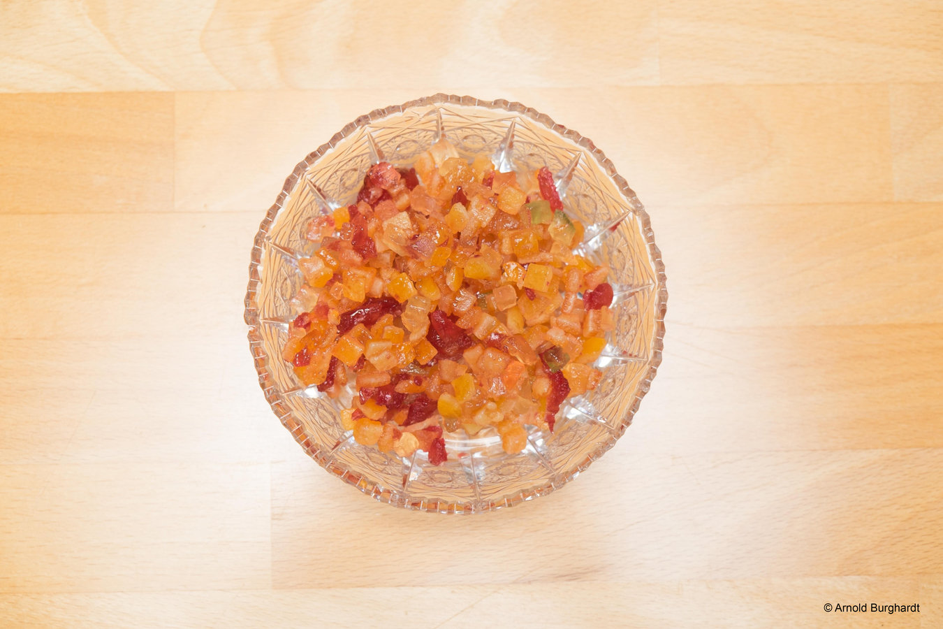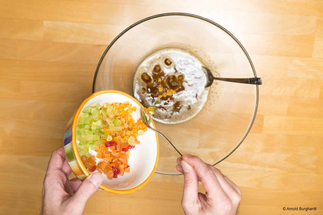Anschließend vermengen Sie Zitronat, Orangeat und Sukkade mit dem Honig.