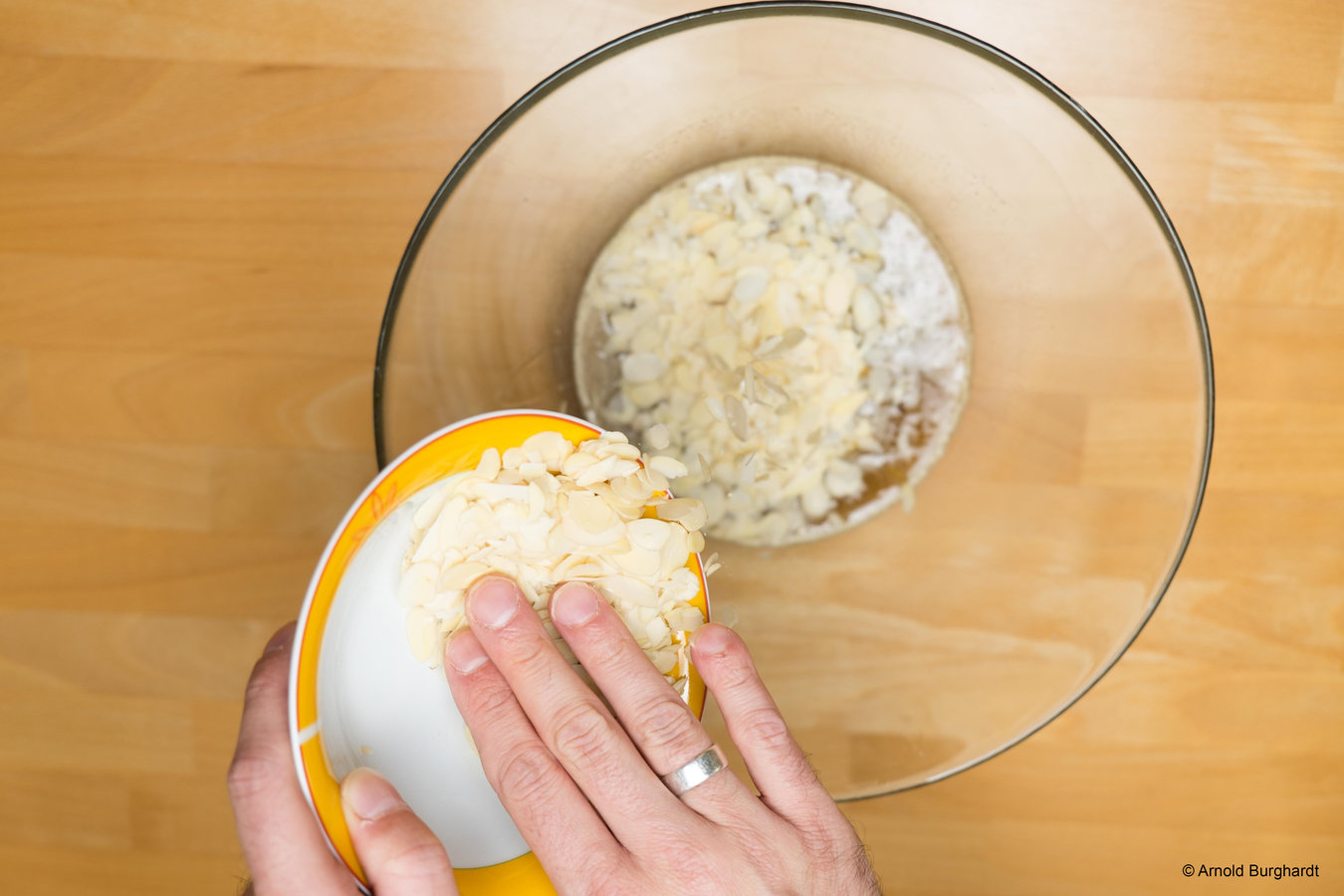 Fügen Sie der Masse die gehobelten Mandeln hinzu.
