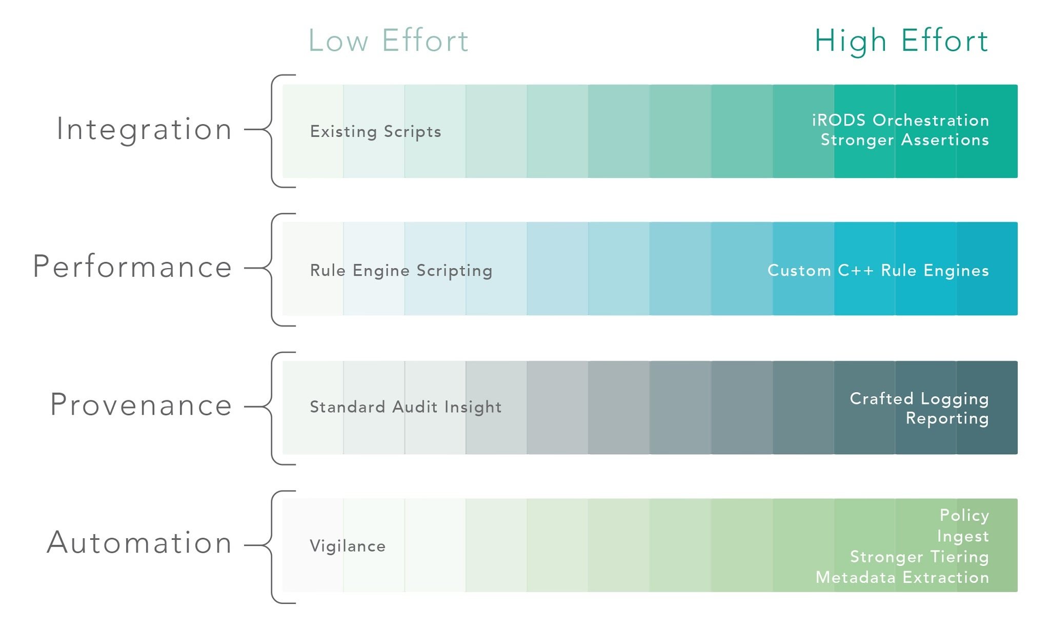 iRODS allows an organization to decide how much effort it wishes to expend on questions of data provenance.