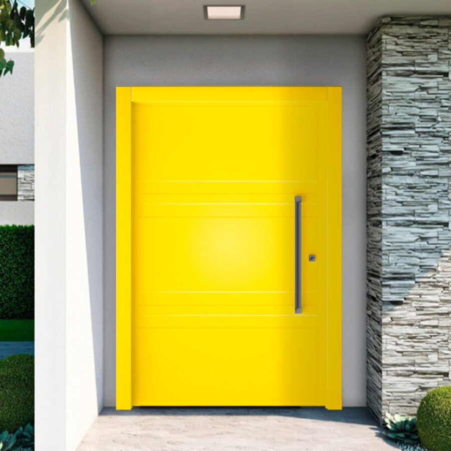 A porta é amarela.