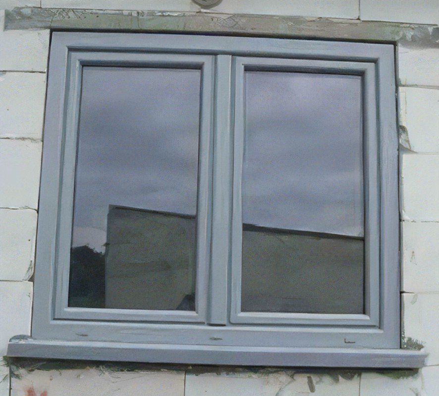 A janela é cinzenta.