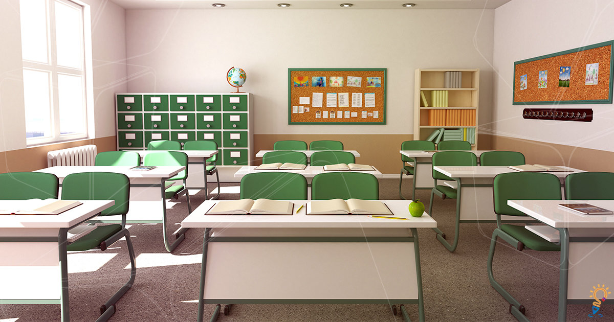 A sala de aula tem vários objetos.