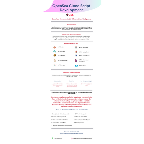 Cryptocurrency Exchange Script is a pioneer company in the field of Blockchain technology and cryptocurrencies. Our tokenized solutions help people around the world to minimize the burden of finances in a digitalized manner. Build and develop a Non-fungible tokens marketplace like OpenSea, and attract a crowd.