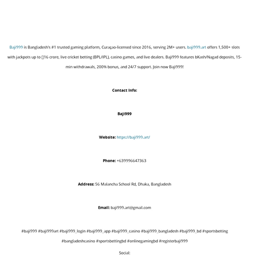 Baji999 Website: https://baji999.art/ Phone: +639996647363 Address: 56 Malancha School Rd, Dhaka, Bangladesh Email: baji999.art@gmail.com #baji999 #baji999art #baji999_login #baji999_app #baji999_casino #baji999_bangladesh #baji999_bd #sportsbetti