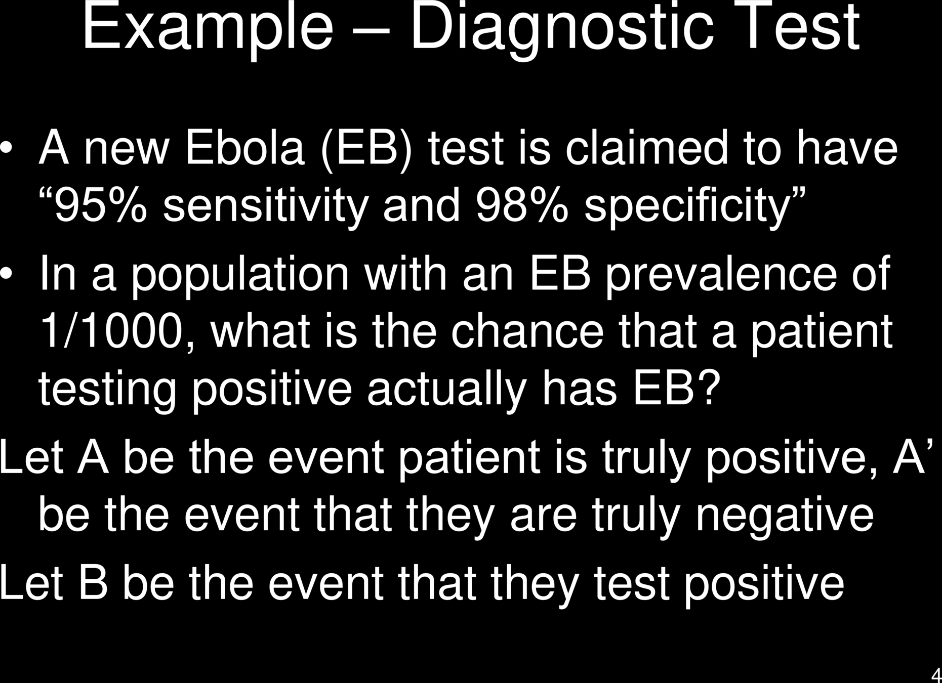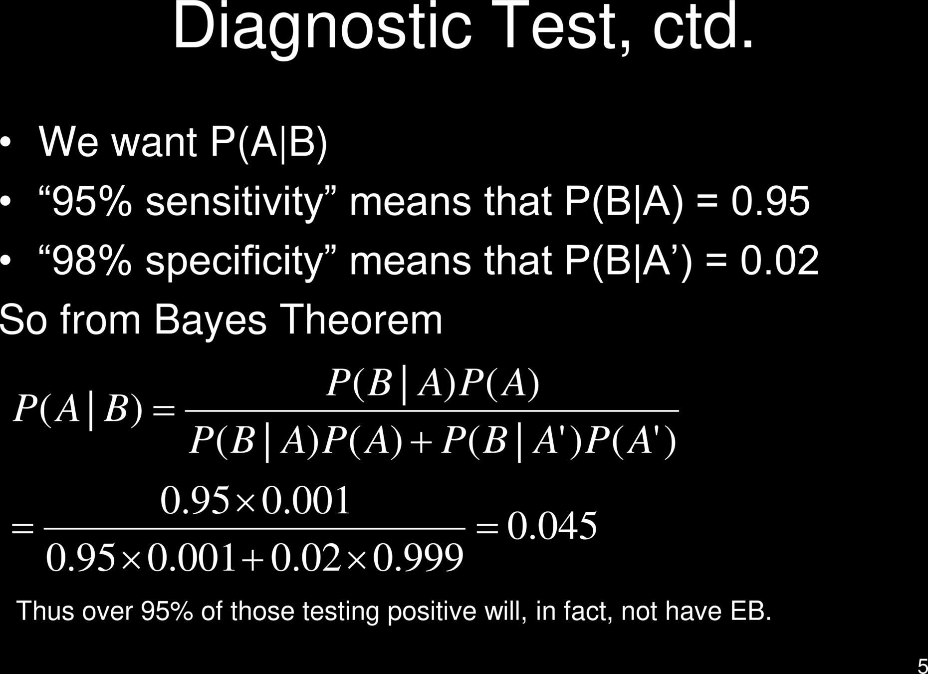 Let sensitivity be \(s\), specificity be \(c\), and prevalence P/(N+P) be \(\wp\).