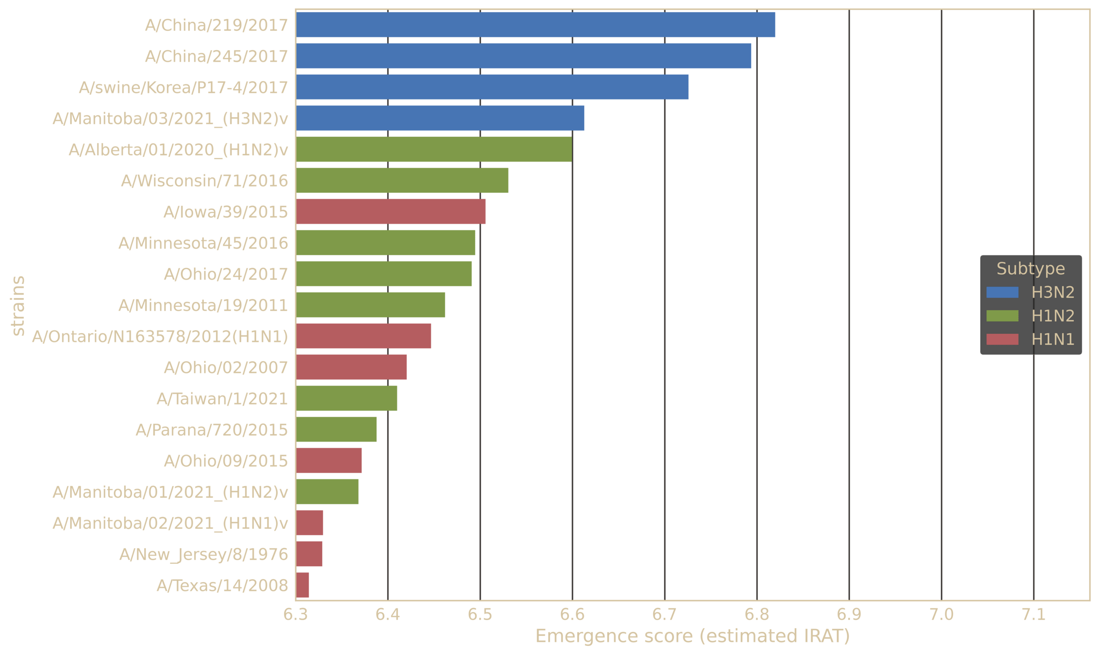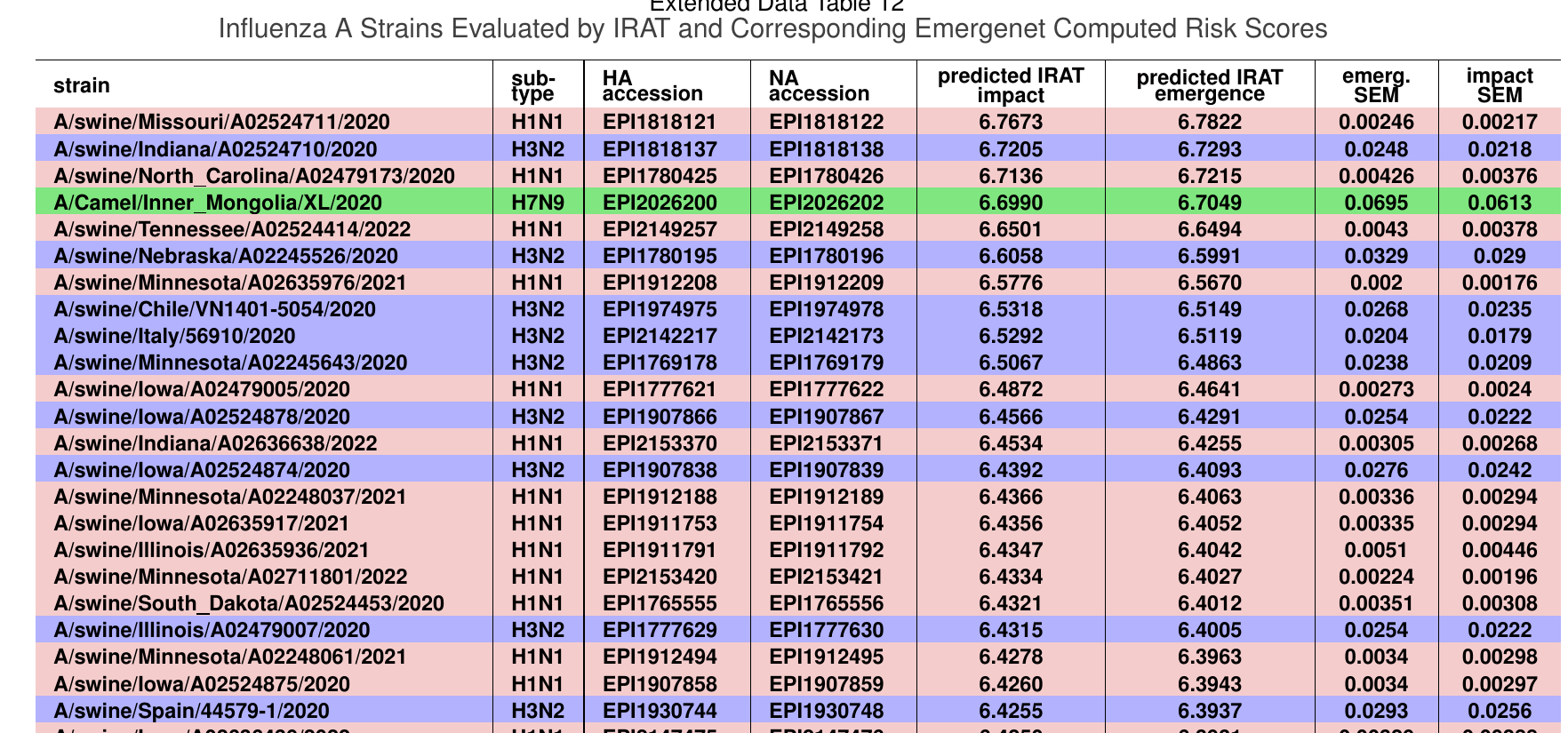 Chattopadhyay, Ishanu, Kevin Wu, Jin Li, and Aaron Esser-Kahn. "Emergenet: Fast Scalable Pandemic Risk Assessment of Influenza A Strains Circulating In Non-human Hosts." (2023). Under Review in Nature