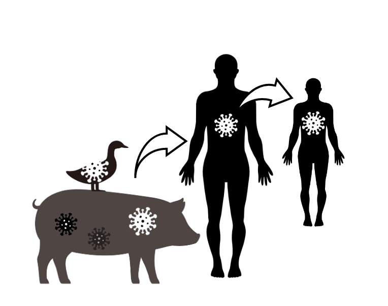 human strain \(x_{h}\) is "well-adapted" \(\Rightarrow Pr(x_h\rightarrow x_h) \approx 1 \)