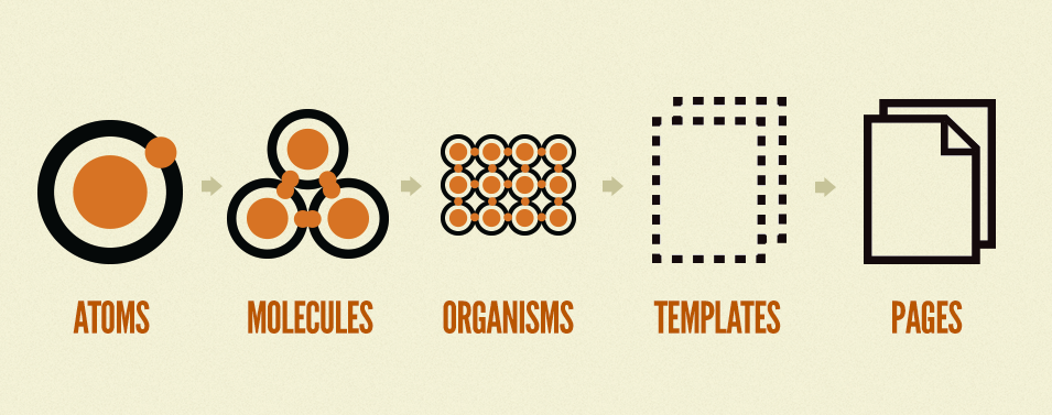 Суть Atomic Design - разбить интерфейсы на фундаментальные блоки и комбинировать их, постепенно наращивая сложность
