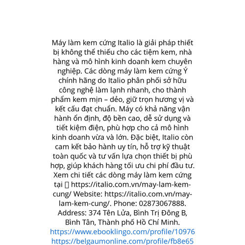 Website: https://italio.com.vn/may-lam-kem-cung/. Máy làm kem cứng Italio là giải pháp thiết bị không thể thiếu cho các tiệm kem, nhà hàng và mô hình kinh doanh kem chuyên nghiệp. Các dòng máy làm kem cứng Ý chính hãng do Italio phân phối sở hữu công