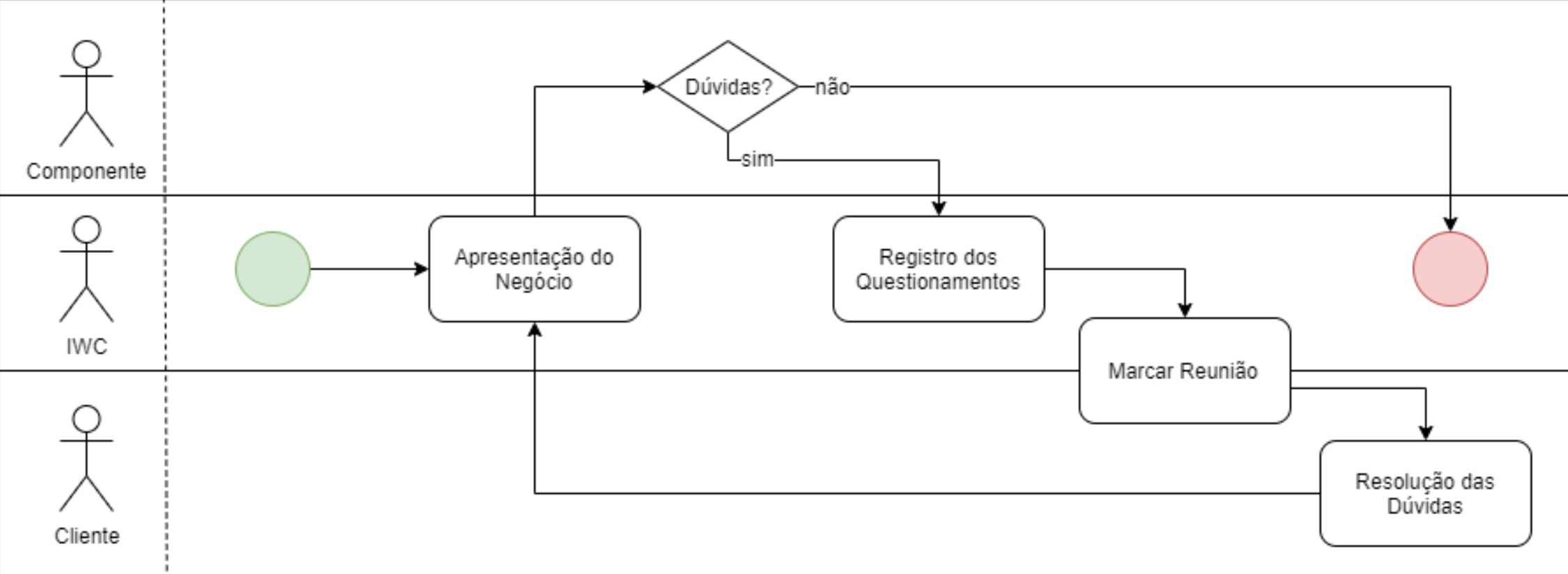 Após a coleta de requisitos iniciais o IWC precisa elaborar uma apresentação do negócio que o projeto será aplicado, é necessário que os principais pontos sejam abordados e toda a equipe entenda qual o problema e por que a solução está sendo aplicada.