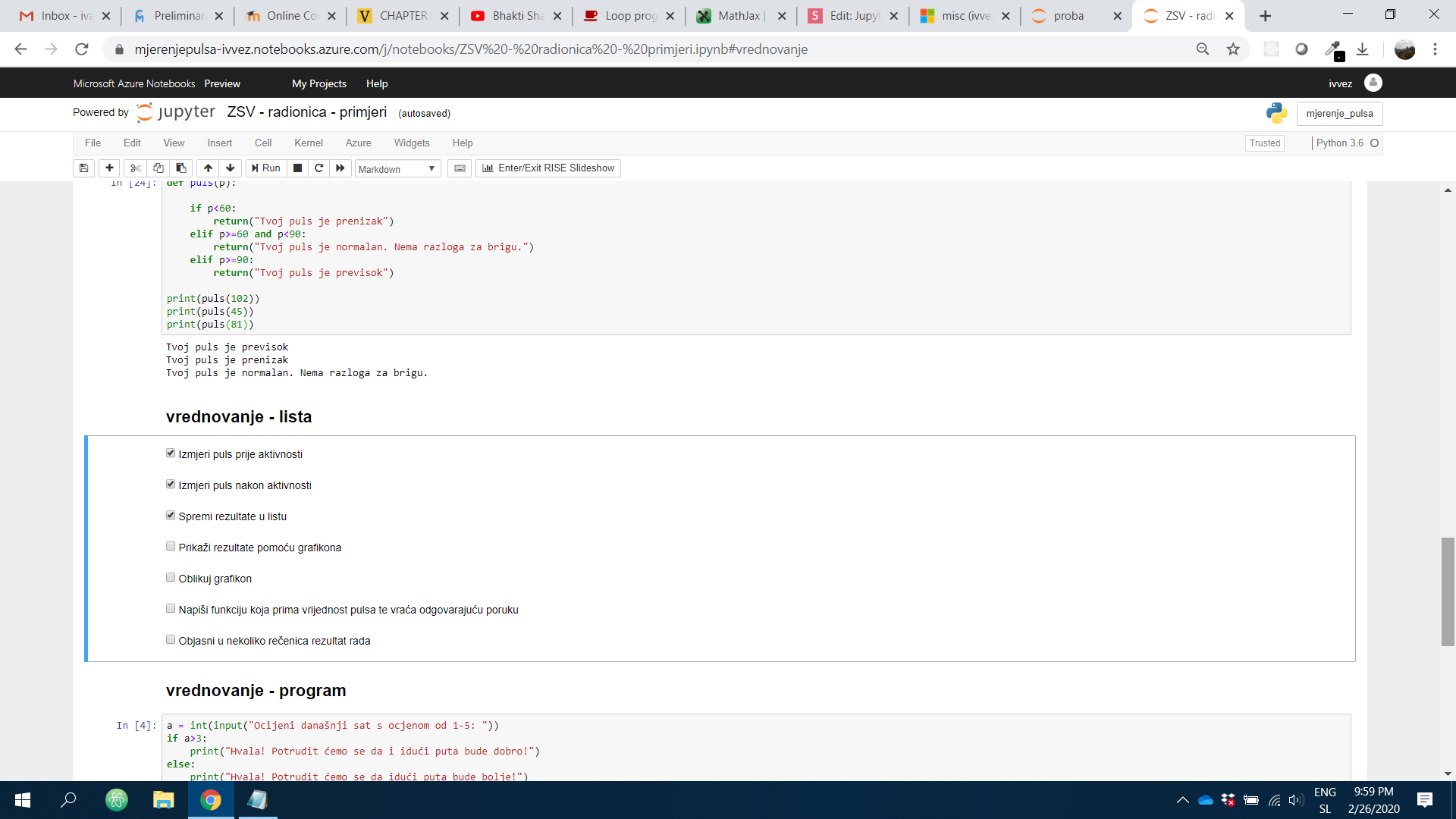 Primjeri za radionicu dostupni na: https://notebooks.azure.com/ivvez/projects/zsv262-radionica