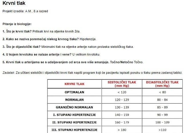 Korelacija: informatika (html, python, pretraživanje interneta), biologija (tema: krvni tlak)