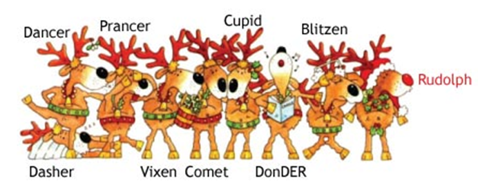 "Vixen Hall", "Comet Smith", "Cupid Knight", "Donder Taylor",