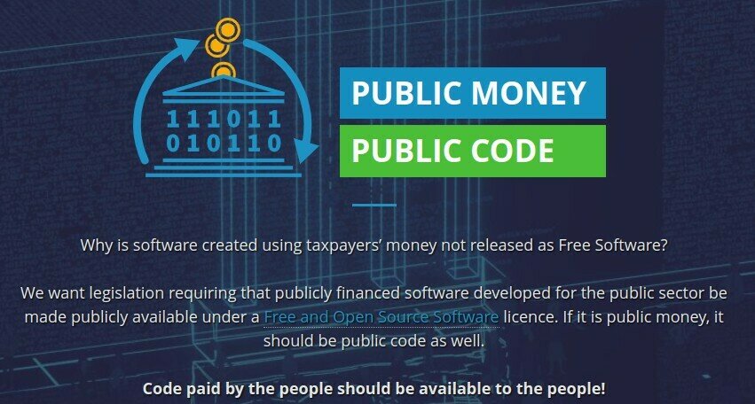 “Implement legislation requiring that publicly financed software developed for the public sector be made publicly available under a Free and Open Source Software licence.”